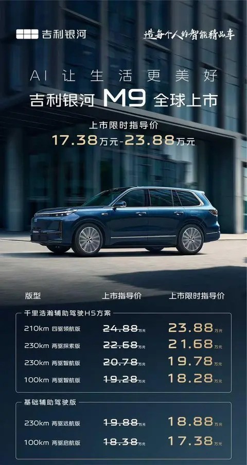 吉利M9正式发布,售价17.38万起,搭载雷神电混与高阶智驾