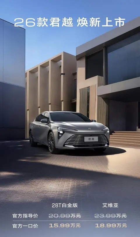 auto.zol.com.cn true https://auto.zol.com.cn/1049/10499867.html report 1470 2026款别克君越正式上市,此次更新在设计、配置与性能层面均实现全面升级,展现出更强的产品实力。外观方面,新车延续品牌最新家族化语言,前脸采用更大尺寸的“飞瀑式”直瀑格栅,面积较以往提升约30%,配合星芒主动进气系统,强化了视觉张力。全新LED羽翼大灯集成352颗...