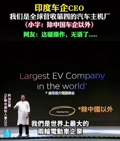印度汽车企业近日宣称摘得“全球电动车第一”的称号,然而细看之下,这一荣誉背后却标注着一行不起眼的补充说明:“除中国外”。如此措辞令人不禁莞尔,仿佛是一场精心编排的数据演绎,以巧妙的方式重塑了事实的呈现。