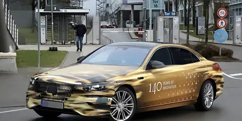 即将到来的140周年纪念版车型,或将采用独特的金色涂装,彰显非凡身份的同时,也向品牌悠久历程致以敬意。外观设计上,新车呈现出经典与现代交融的气质,灵感隐约可见于此前的概念之作,整体风格既保留了旗舰车型应有的庄重感,又融入了前瞻性的视觉元素。标志性的立标设计依旧得以延续,三叉星徽醒目而经典;前脸采用无边界格栅布局,配合熏黑处理的灯组外罩,更具动感气息。搭载350万像素数字大灯系统,照明能力大幅提升。AMG风格运动套件、主动式进气格栅等细节配置悉数到位,进一步优化空气动力学表现。