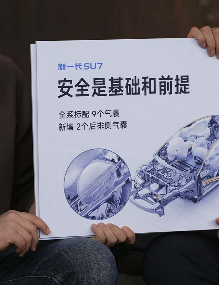 一月七日,小米公司创始人、董事长兼首席执行官在当日的直播活动中表示,安全始终是产品开发的根本前提。他透露,新一代SU7将全系标配九个气囊,相比此前版本新增了两个后排侧方气囊,进一步提升乘员保护能力。