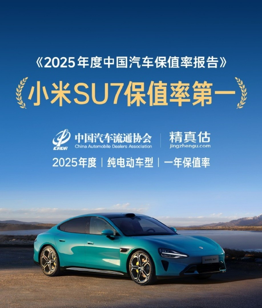 为帮助公众更清晰地了解真实情况,雷军援引了中国汽车流通协会与精真估联合发布的2025年度中国汽车保值率报告。报告显示,小米SU7在2025年度纯电车型一年保值率榜单中位列第一,达86.05%,是目前保值表现最突出的纯电动车型。