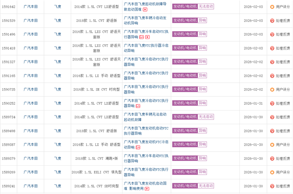 auto.zol.com.cn true https://auto.zol.com.cn/1130/11305125.html report 1494 2026年2月5日,第三方汽车投诉平台数据显示,广汽本田飞度车型近期出现多起集中投诉。 投诉主要集中在冷启动状态下VTC执行器发出异常声响,涉及2014款至2018款全系车型。 多位车主反映,车辆在低温环境下启动时,发动机舱内可清晰听到连续的“哒哒哒”金属敲击声,持续...