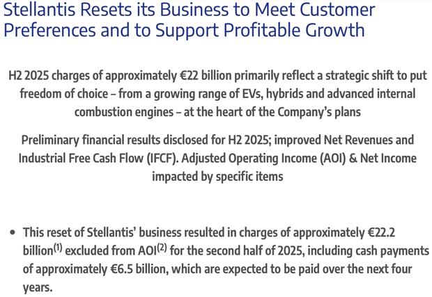 根据集团提前披露的2025年第四季度初步业绩数据,预计2025年下半年净亏损区间为190亿至210亿欧元,折合人民币约1550亿元至1720亿元。