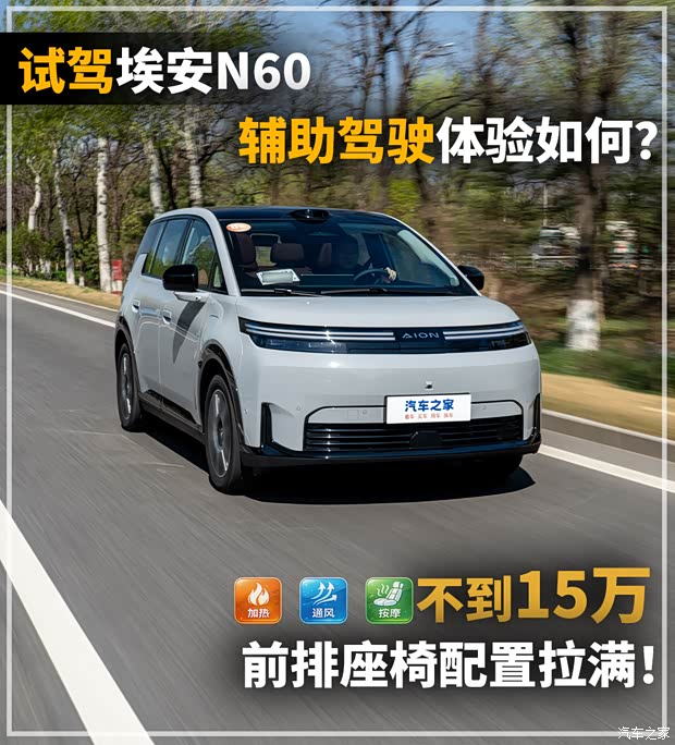 在十五万元以内的主流车型市场中,消费者最关注的要素始终集中在经济性、实用性与配置丰富度三方面。空间表现是否宽裕、功能配置是否到位、用车成本是否合理,构成了这一价格区间车型的核心竞争力。本次试驾的埃安N60,官方指导价低于十五万元,却搭载了硬件规格完整的高阶智能驾驶辅助系统;前排座椅集成加热、通风及按摩功能;副驾驶更配备零重力舒享座椅。那么,这样一台高配入门级车型,实际驾乘感受如何?空间布局是否符合家庭出行需求?与文远知行联合开发的智驾系统,在真实道路环境中又能否兑现技术承诺?